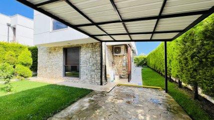 Im Erdgeschoss der Villa gibt es eine offene Küche, ein Wohnzimmer mit Zugang zur Terrasse, ein Schlafzimmer und ein Badezimmer.