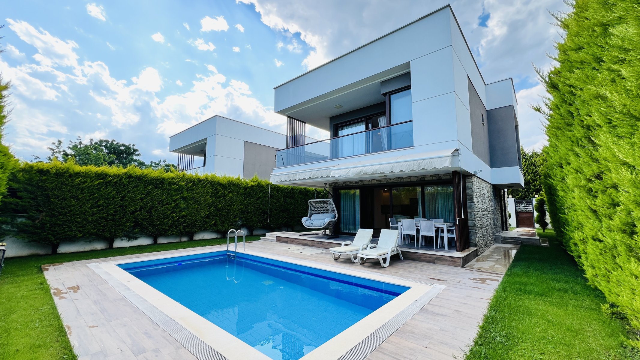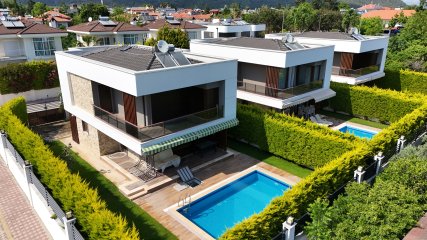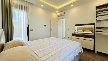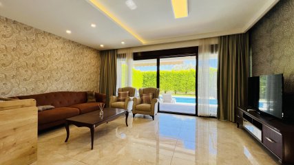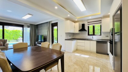 Bei der zu vermietenden Villa in Kemer handelt es sich um eine Maisonette-Villa mit einer Gesamtfläche von 180 m², die sich auf einer Fläche von 450 m² befindet. Die Mietvilla mit privatem Pool und herrlichem Bergblick liegt in der Nähe lokaler und sozialer Einrichtungen.