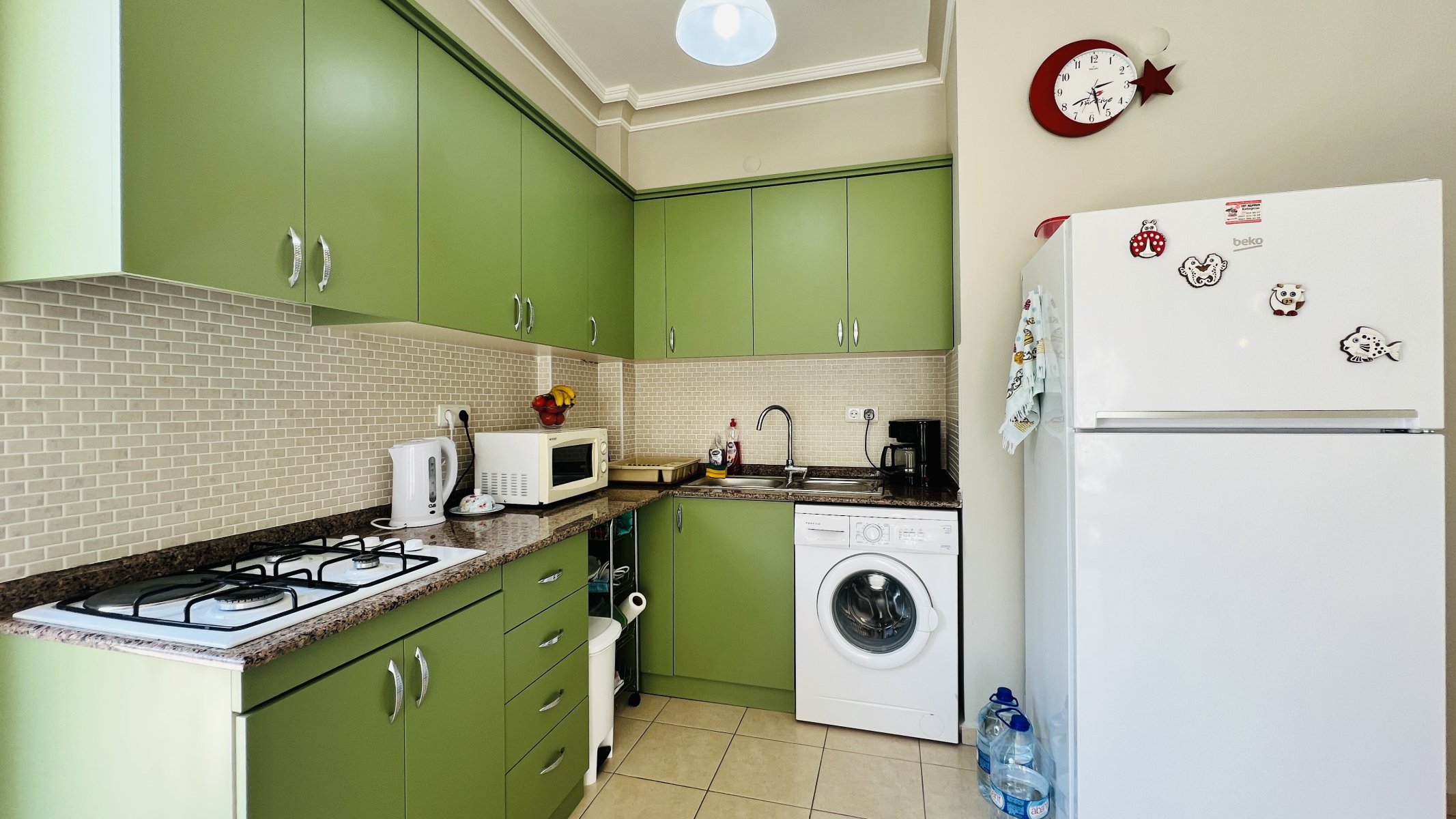Wohnung im zweiten Stock zu verkaufen, ganz in der Nähe von Çamyuva Migros und dem Marktplatz. Die zum Verkauf stehende, komplett möblierte Wohnung besteht aus einem einzigen Block und 5 Wohnungen und verfügt über einen Gemeinschaftspool und -garten.