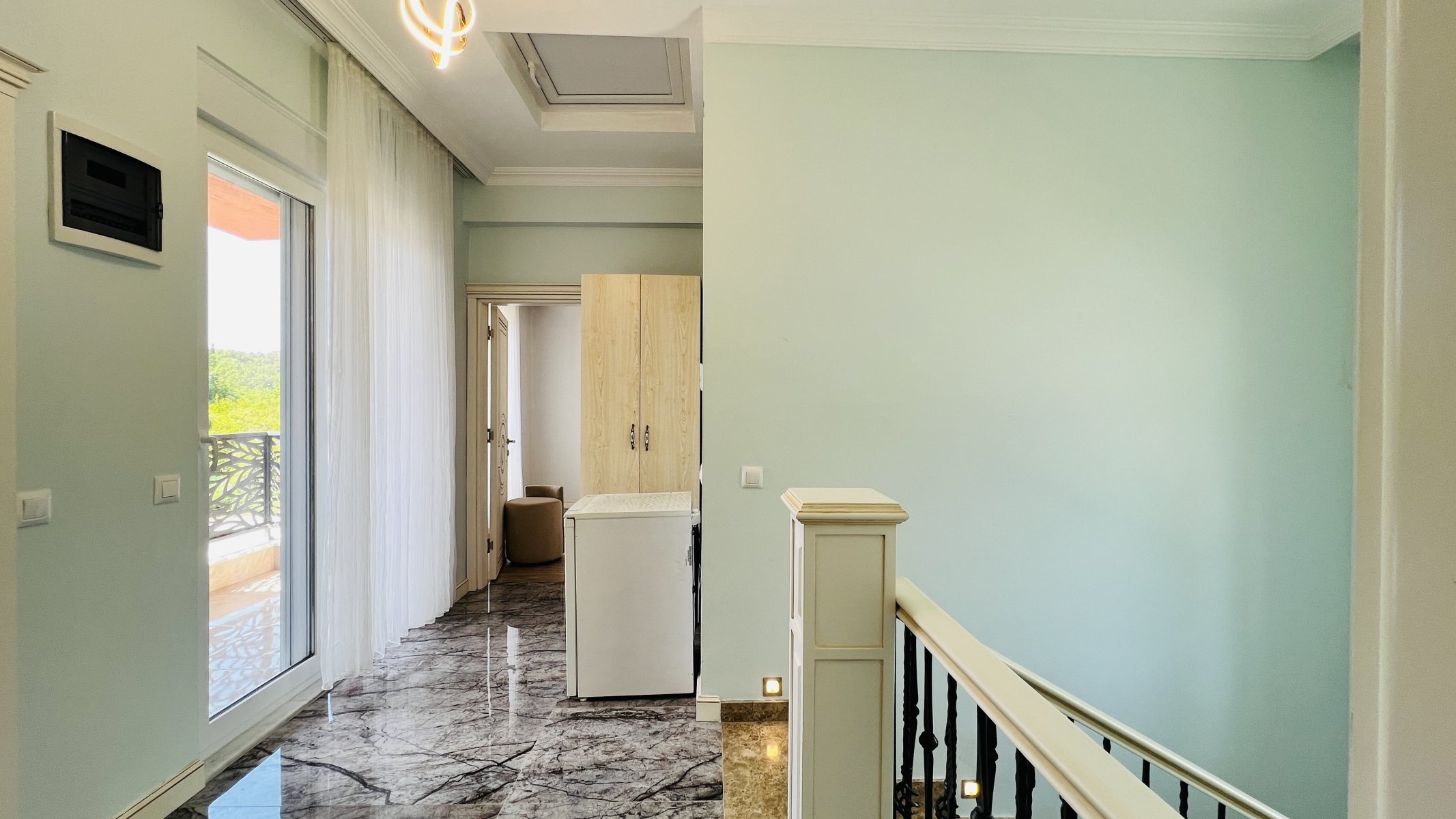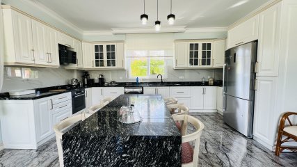 Die Mietvilla besteht aus 4+1 Zimmern, einem großen Wohnzimmer, einer offenen Küche, 4 Schlafzimmern, 3 Bädern und 2 großen Terrassen.