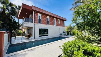 Villa zu vermieten in Kemer, 4+1-Grundriss, Gesamtfläche 200 m², auf 834 m² großem Grundstück gelegen. Die Villa liegt in einer grünen und ruhigen Gegend von Kemer, im Stadtteil Çamyuva, 7 km vom Zentrum von Kemer, nur 700 m vom Strand, 67 km vom Flughafen Antalya und nur wenige Gehminuten von allen Einkaufsmöglichkeiten entfernt.