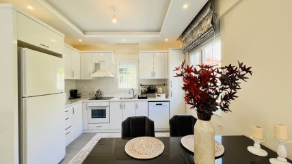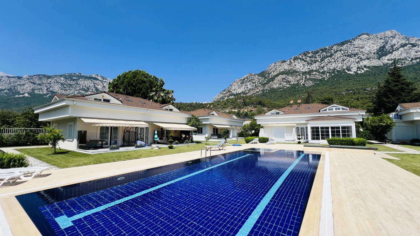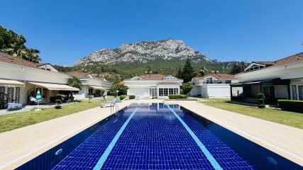 Diese wunderschöne Doppelhaushälfte befindet sich in einer gepflegten Wohnanlage in Arslanbucak, Kemer, und bietet einen atemberaubenden Blick auf die Berge.
