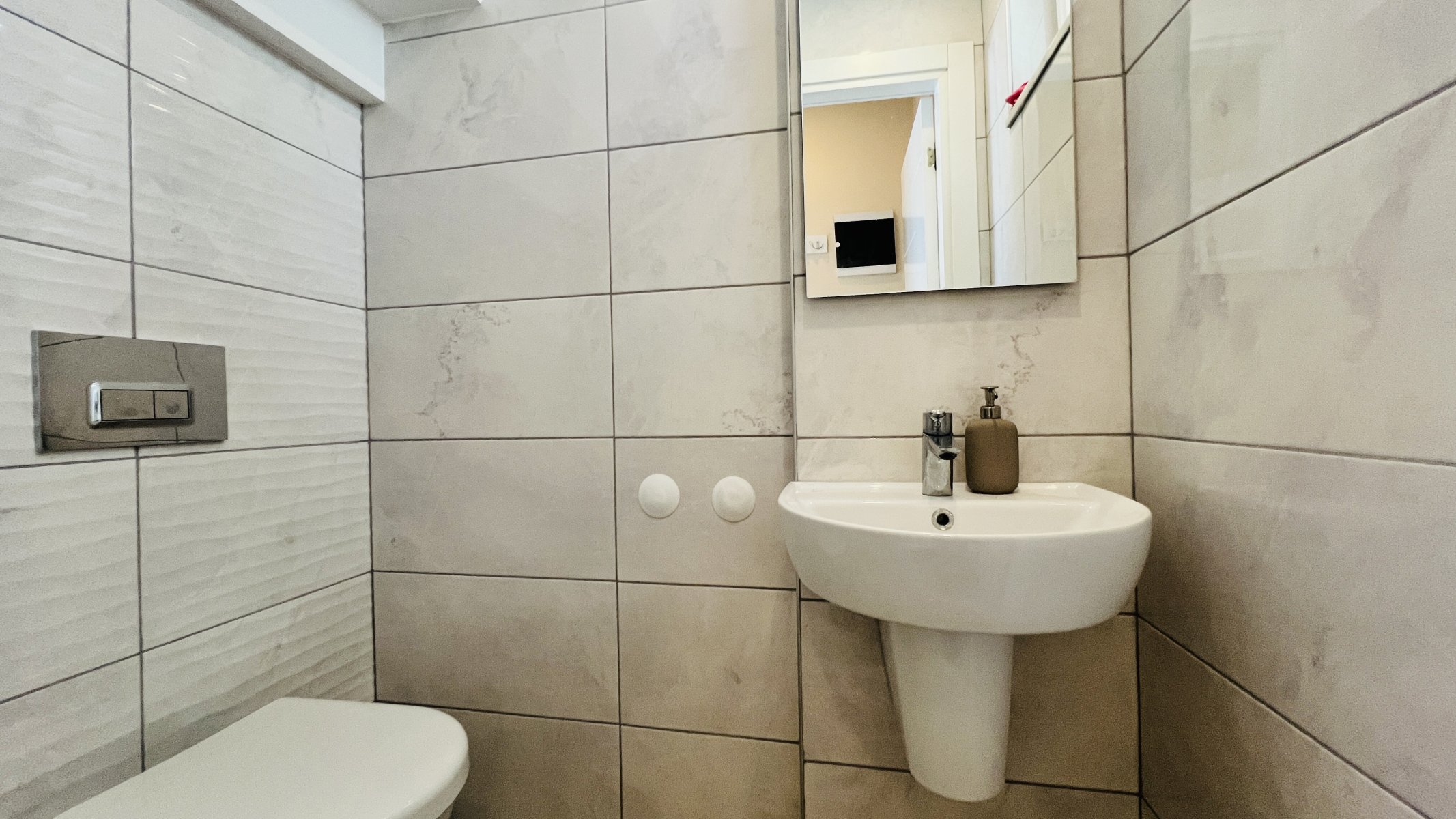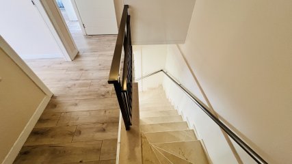 Im Erdgeschoss befinden sich außerdem ein Gäste-WC, eine Eingangshalle sowie ein praktischer Waschmaschinenbereich unter der Treppe.