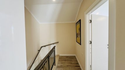 Im ersten Stock bieten versteckte Schränke über der Treppe zusätzlichen Stauraum und helfen, das Haus ordentlich zu halten.