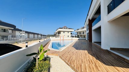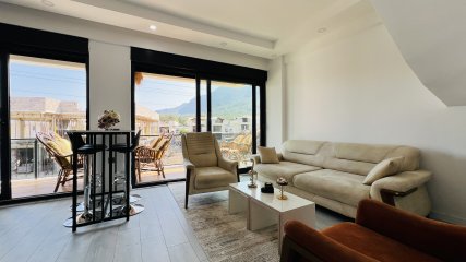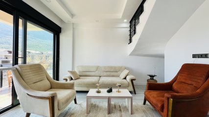 Neue möblierte Maisonette-Wohnung zu vermieten in Kemer Kuzdere, 2+1 Zimmer, voll möbliert und in einer Anlage mit Pool. Die Mietwohnung mit herrlichem Blick auf das Taurusgebirge befindet sich in einem verkehrsgünstigen und neuen Viertel.