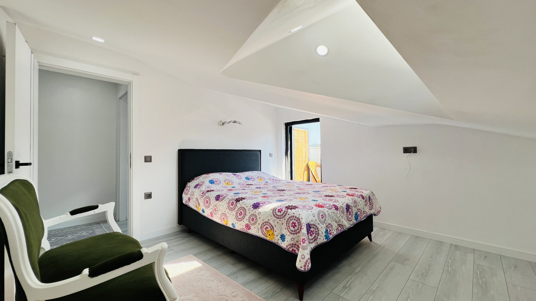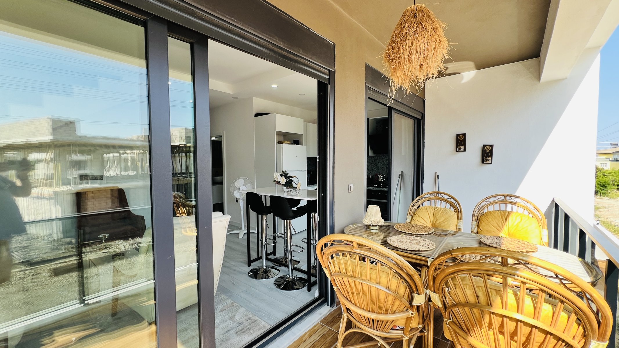 Bei der zu vermietenden Wohnung handelt es sich um eine Maisonette-Wohnung. Im ersten Stock; Es gibt ein Wohnzimmer, eine offene Küche, einen großen Balkon und eine Toilette. Im zweiten Stock; Es gibt 2 Schlafzimmer, ein gemeinsames Bad-WC und einen von beiden Zimmern zugänglichen Balkon.