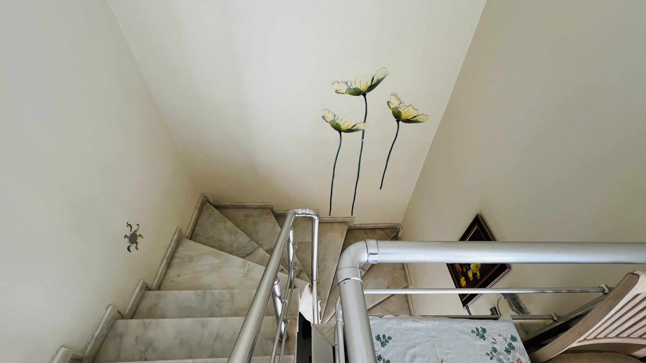 The villa features 3 bedrooms, an open-plan living room with American kitchen, 2 bathrooms and 1 guest toilet. On the ground floor there is a spacious living area, guest WC and a terrace with pool and nature views. The upper floor includes a master bedroom with en-suite bathroom, two additional bedrooms, a shared bathroom, balconies and a storage area.