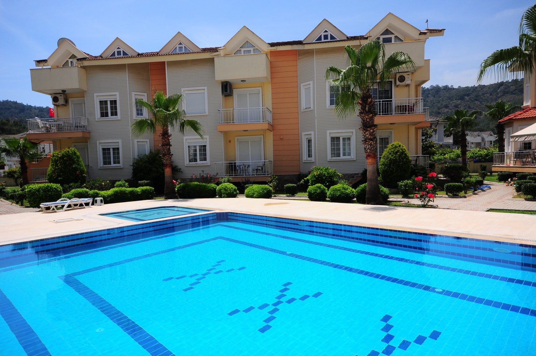 The apartment is located within a residential complex consisting of 4 blocks and 16 apartments in total. The complex is built on a 2,708 m² plot. Residents can enjoy privileged facilities such as a large swimming pool and beautiful nature views.