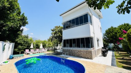 Tekirova ligger svært nær stranden, kun 5 minutters gange. Du kan plante hvilken som helst plante du vil i din private hage. Den fullt møblerte eneboligen har stor stue, kjøkken og bad i første etasje. Det er 2 soverom og 1 bad i andre etasje og 1 soverom i tredje etasje.