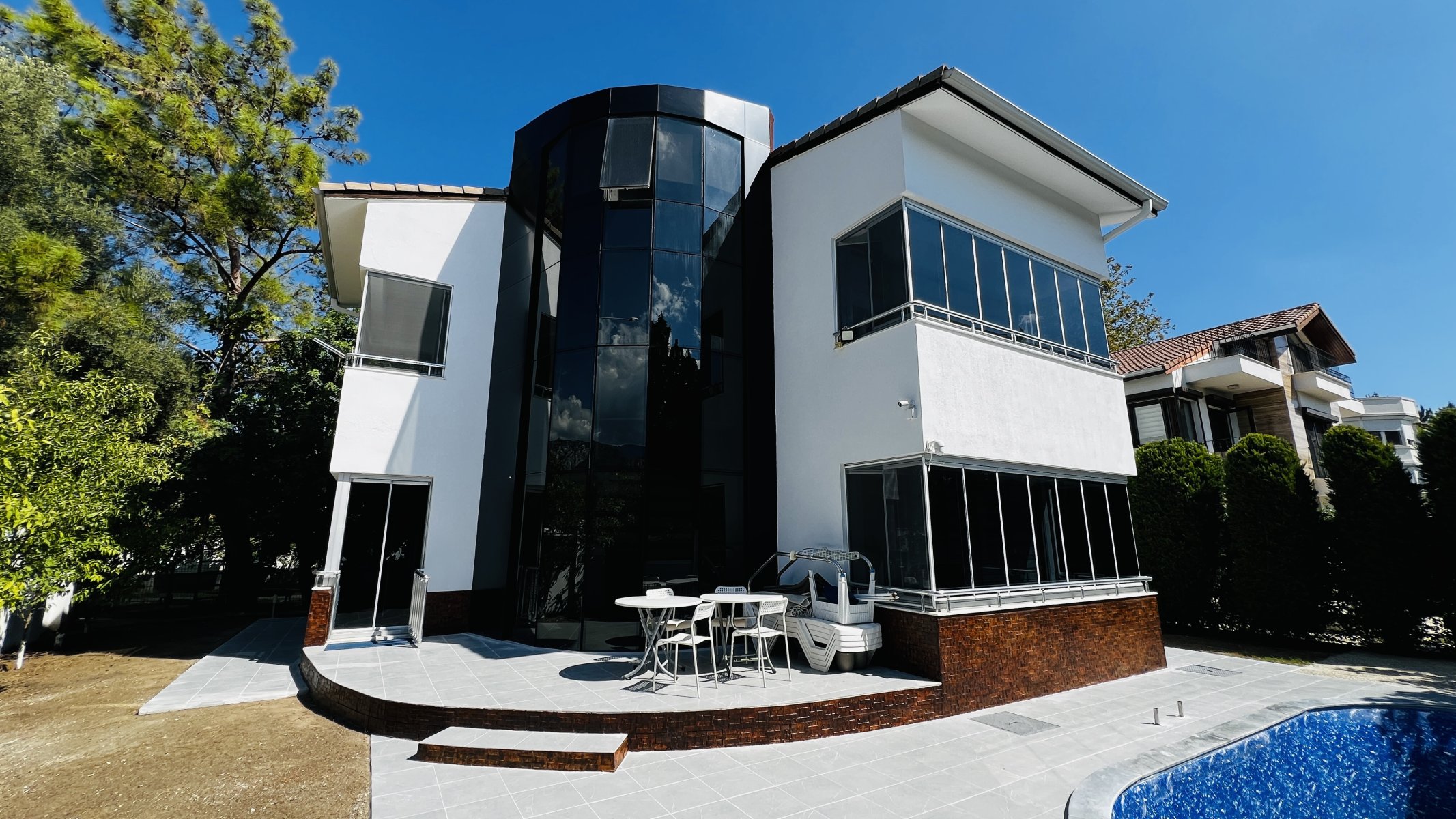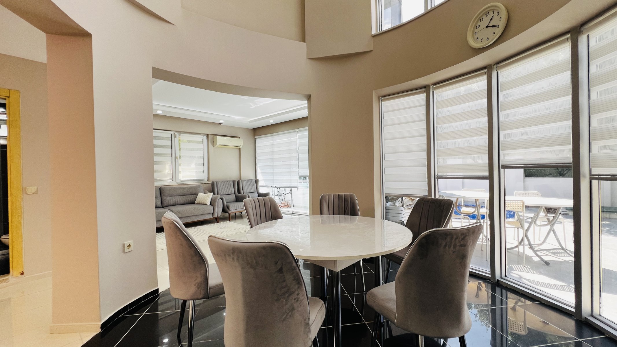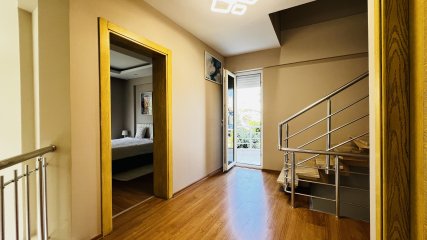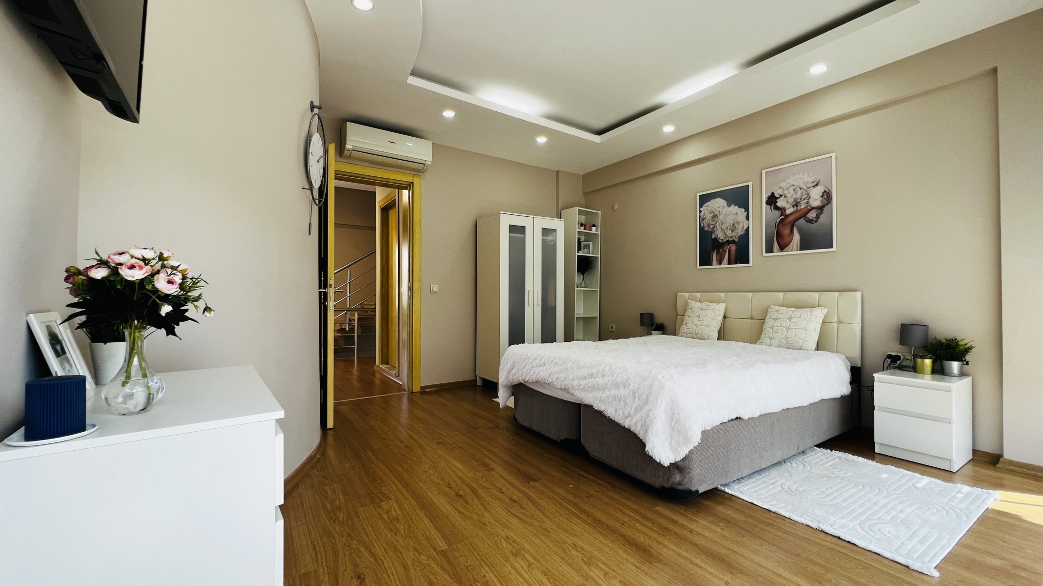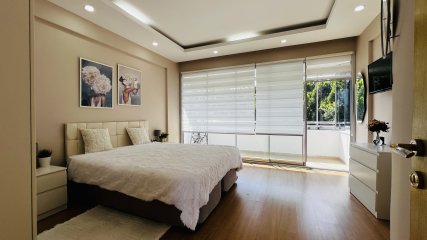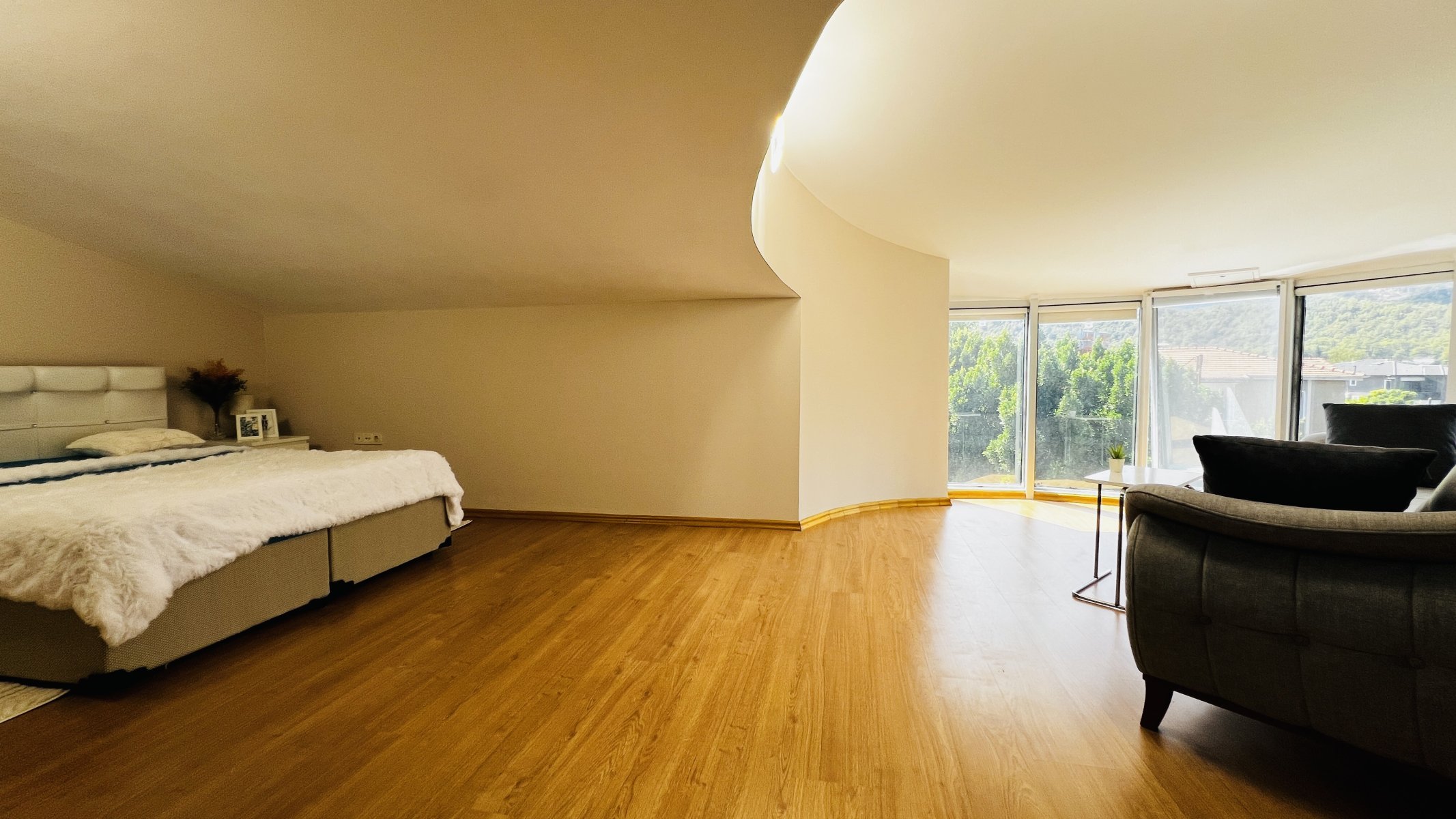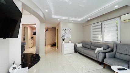 Den består av 3 soverom, 1 stue, 1 kjøkken og 2 bad med et bruksareal på 152 m2. Den har en stor terrasse som åpner ut mot hagen og Tahtalı-fjellutsikt.