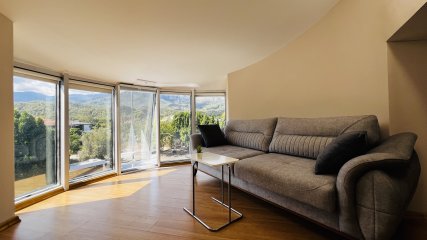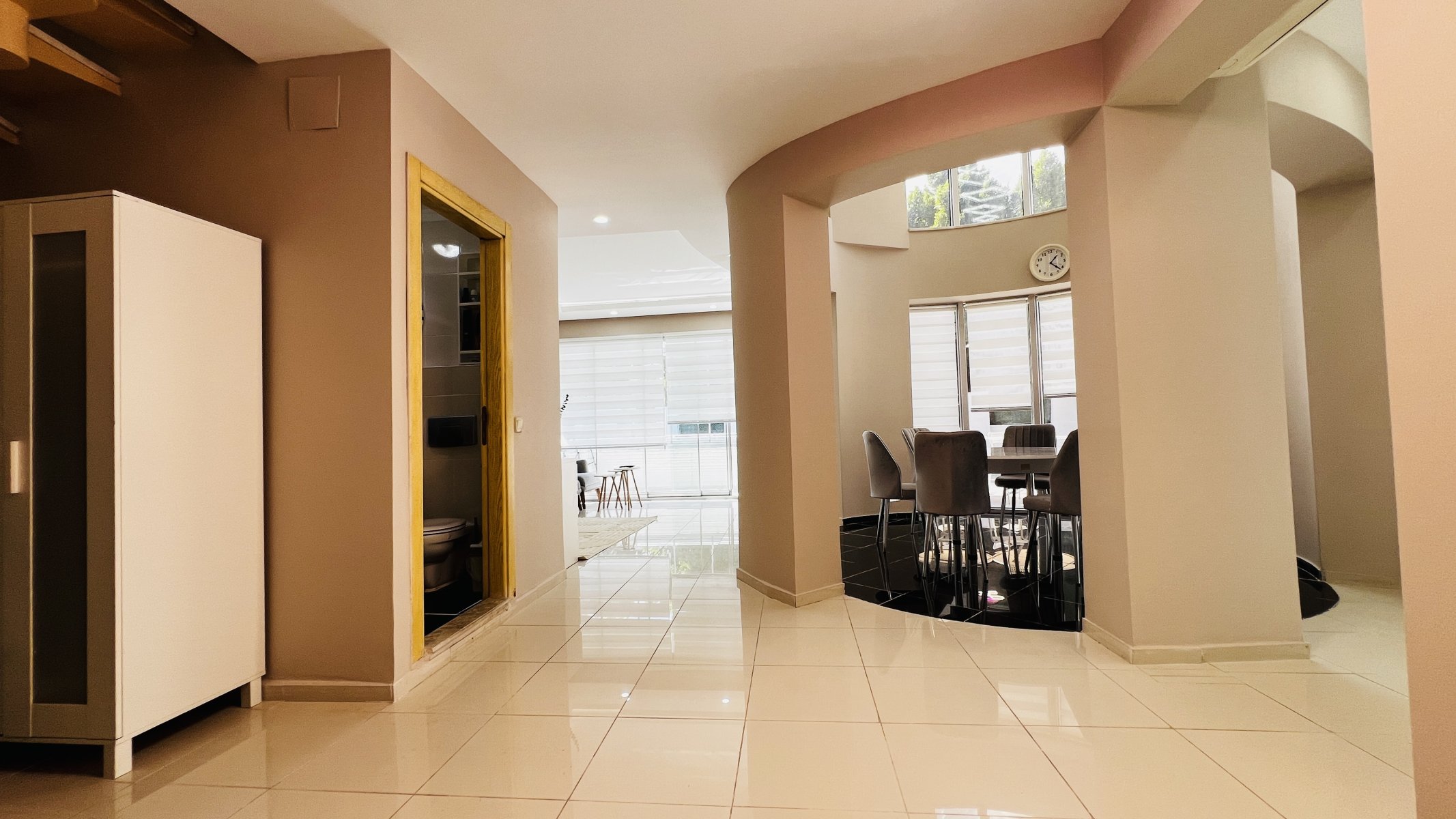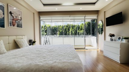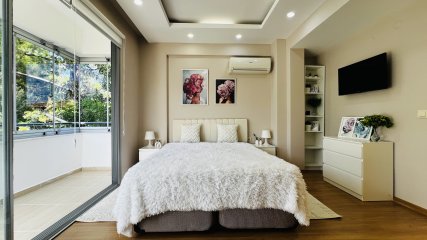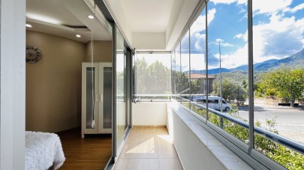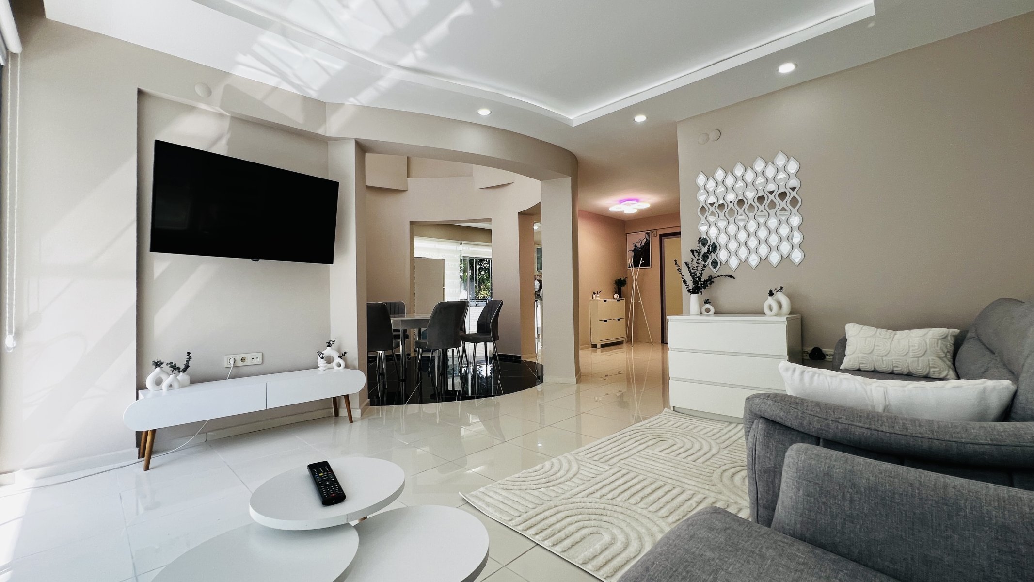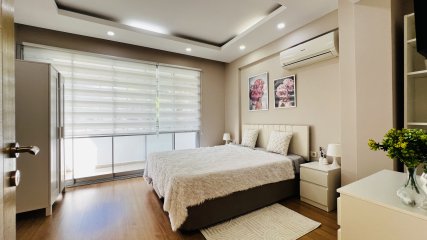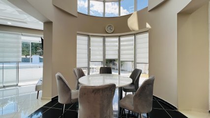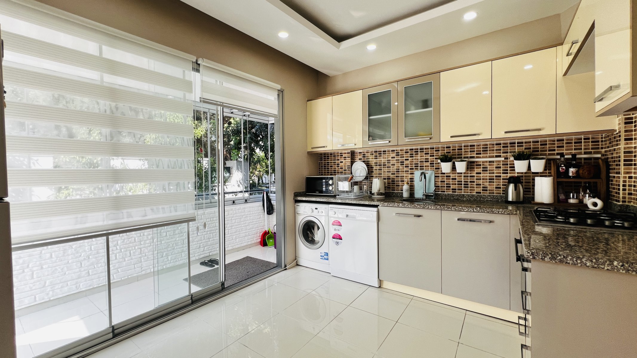 Den består av 3 soverom, 1 stue, 1 kjøkken og 2 bad med et bruksareal på 152 m2. Den har en stor terrasse som åpner ut mot hagen og Tahtalı-fjellutsikt.