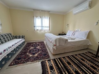 Det er totalt 11 1+1 bungalower, 1 stor villa type hus og 5 store rom til leie. Butuk hotellet har et inne- og uteområde med storslått utsikt over dal og skog, som brukes som restaurant. Det er flere parkeringsplasser og lagringsområder. I hageseksjonene kan gjestene plukke sine egne grønnsaker og spise dem ferske. Den har fruktbar jord og fantastisk utsikt. Den har mer enn 100 frukttrær.