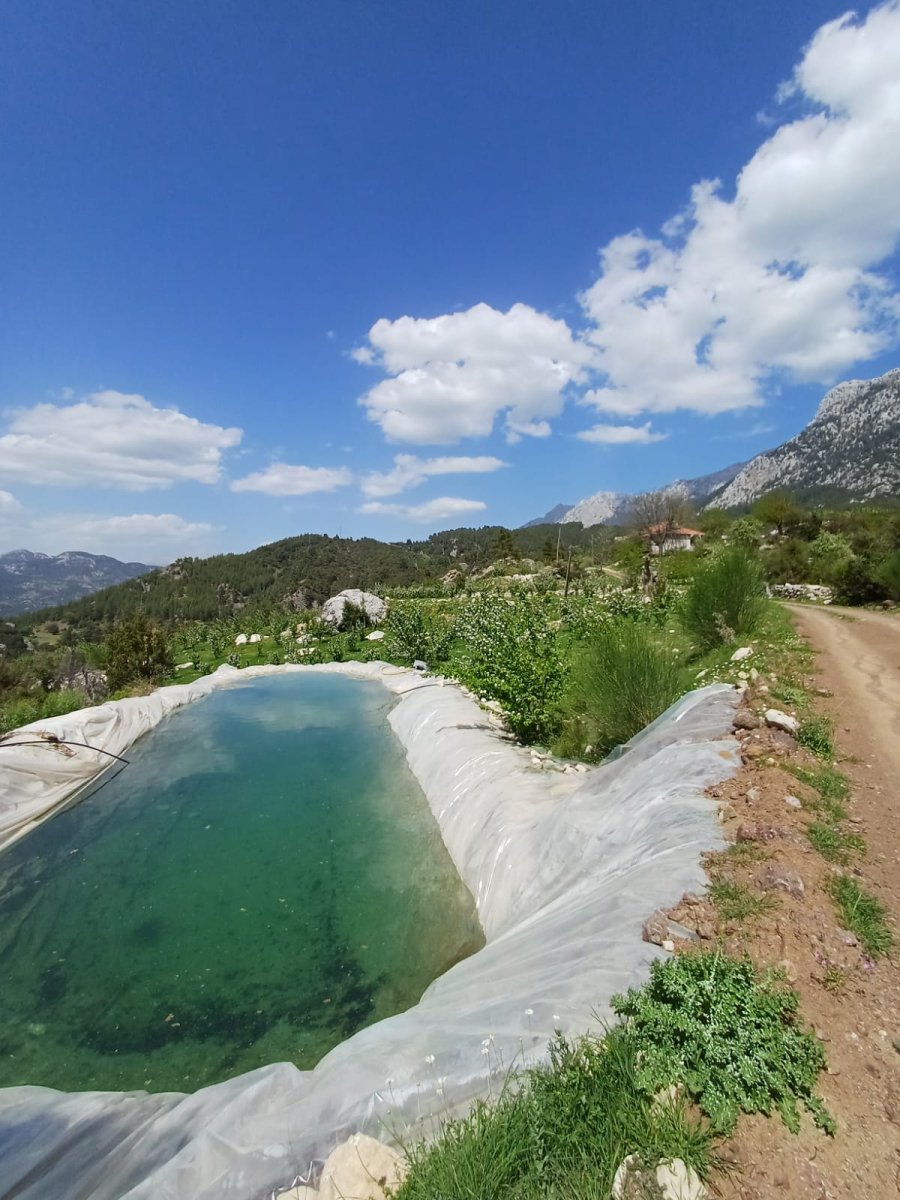 Eiendommen er utstyrt med dryppvanningssystem, egen vannreservoar, naturlig kildevann, og mulighet for tilkobling til Altinyaka vanningsforening. Det er abonnement på landbruksstrøm, vanningspumpe, og kommunalt vann er også tilgjengelig – perfekt for både hobbybruk og profesjonell drift.