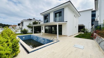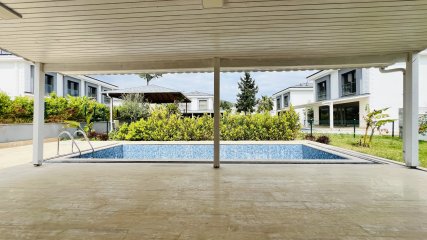 Frittstående villa til salgs i Kemer Göynük har privilegerte bofasiliteter som svømmebasseng, fjellutsikt og egen parkeringsplass.