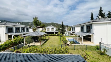 Den frittliggende villaen til salgs i Göynük by i Kemer er et kvalitetsboligområde med en unik utsikt over Toros-fjellene.