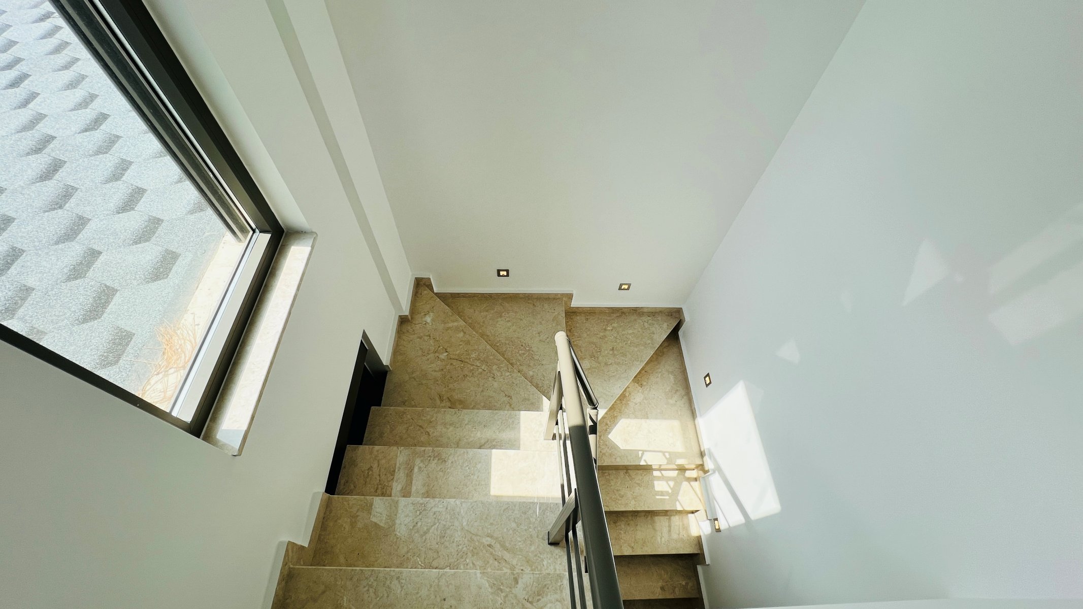 Frittstående villa i to etasjer til salgs. Villaen ligger i første etasje: stue, åpen kjøkkenløsning, 1 soverom, 1 bad-WC og en stor terrasse. I andre etasje: 3 soverom, 1 delt bad-WC og 1 en-suite bad-WC. Villaen har et komplett gulvvarmesystem.