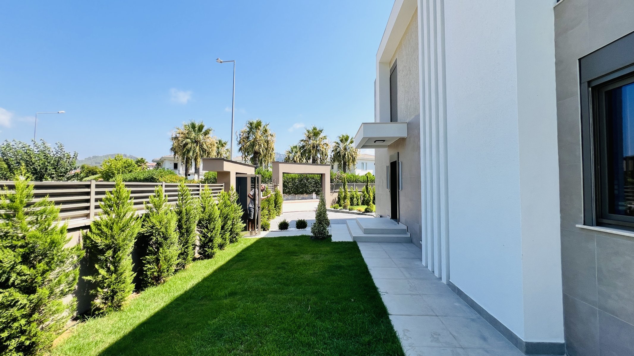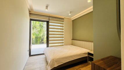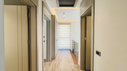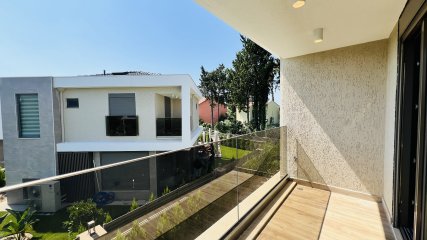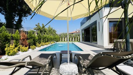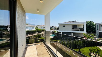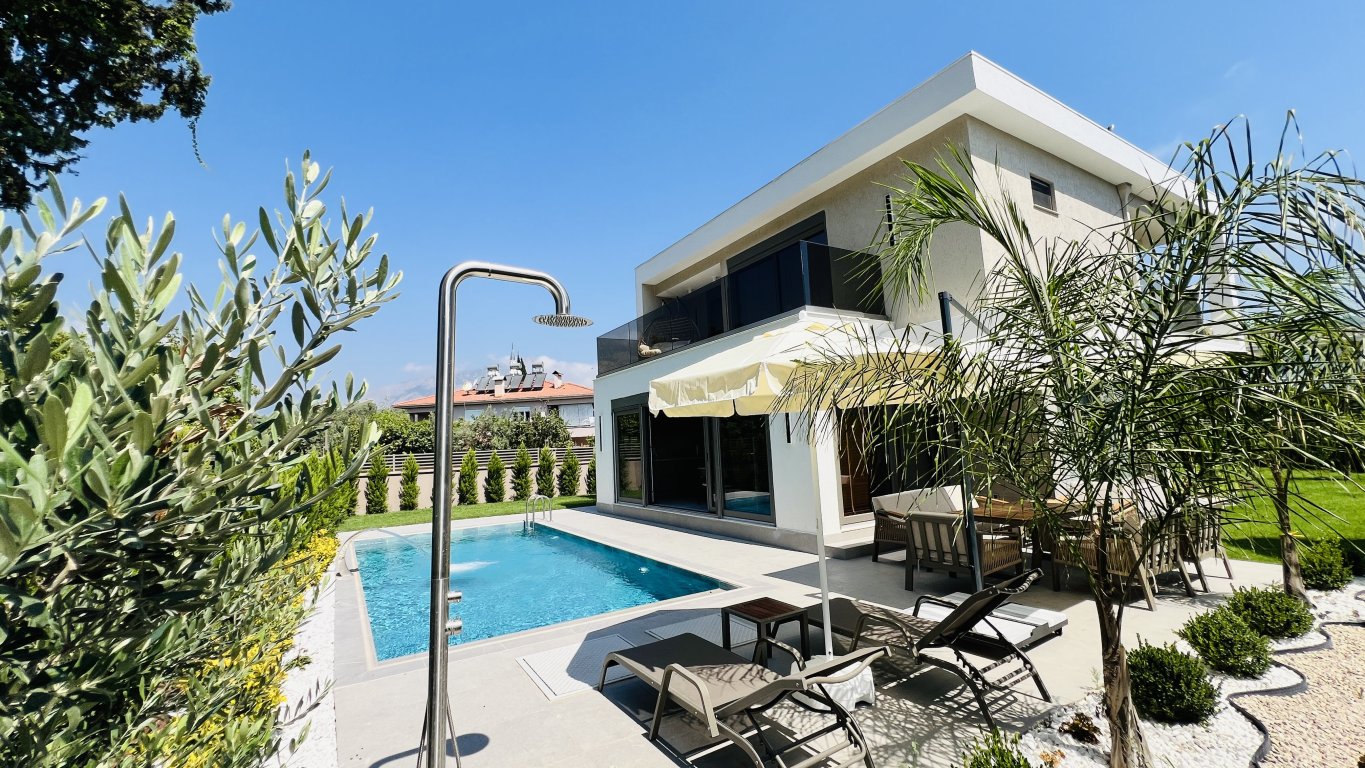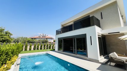 Denne frittstående villaen på en tomt på 350 m² i Çamyuva-området i Kemer skiller seg ut med sin moderne arkitektur og gjennomtenkte planløsning.