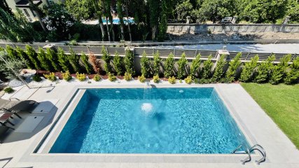 Villaen er designet over to etasjer med totalt 220 m² boareal. Den inneholder 3 romslige soverom, 3 moderne bad/toaletter, samt en stor stue og kjøkken. Stuen og kjøkkenet åpner direkte ut mot privat basseng og velstelt hage, og skaper et perfekt bomiljø.
