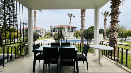 LEILIGHET I BAKKEPLAN TIL SALGS i Kemer Çamyuva, i et velholdt kompleks med basseng og utsikt over naturen. Vår fullt møblerte leilighet, som ligger ved bassenget, er fantastisk med tanke på beliggenhet og utsikt mot solen.