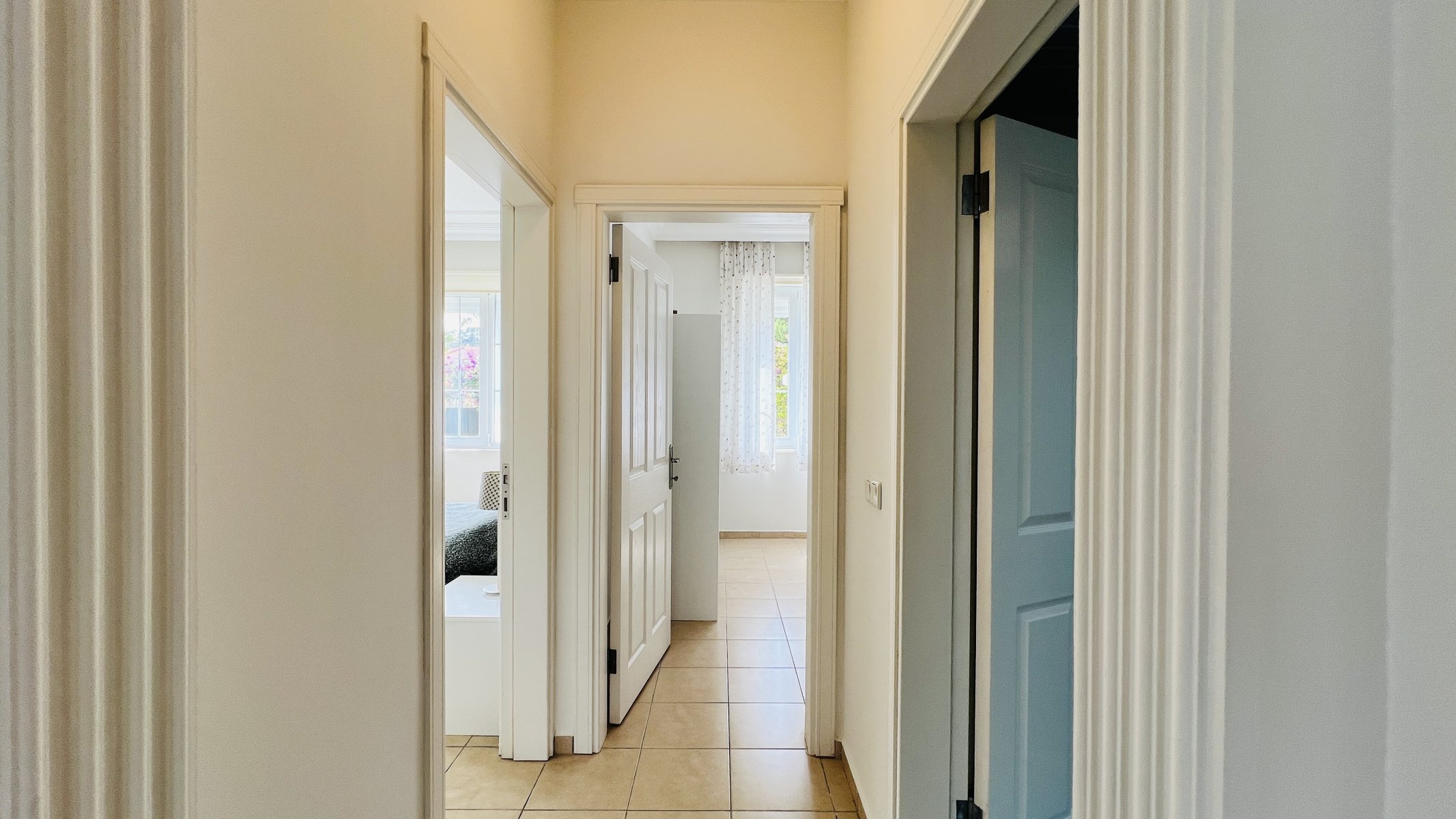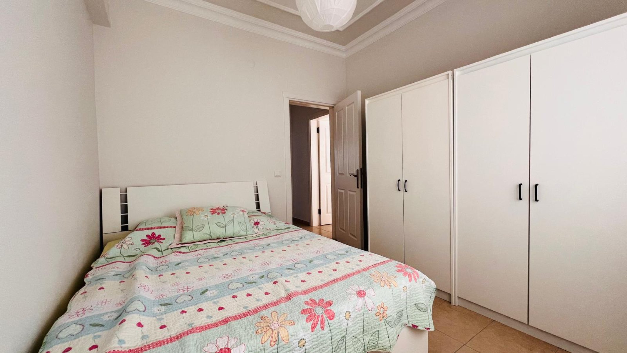 Denne leiligheten til salgs i Kemer Çamyuva består av 2 soverom, 1 stue, 1 åpen kjøkkenløsning, 1 bad, 1 toalett, 2 balkonger, 1 terrasse og 1 bod.