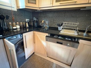 Mutfak tamamen mobilyalıdır ve SIEMENS marka kaliteli beyaz eşyalarla donatılmıştır. Bulaşık makinesi, çamaşır makinesi, kurutma makinesi, gazlı ocak, fırın, mikrodalga fırın ve tam set küçük ev aletleri vardır.