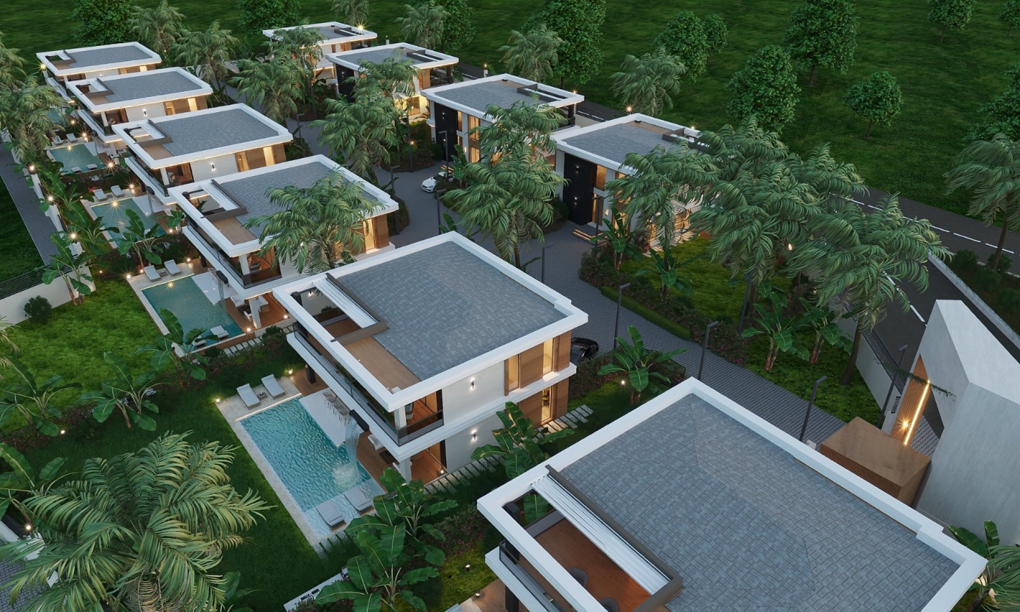 Villanın çevresi, bakımlı bahçesi ve otomatik sulama sistemiyle profesyonel peyzaj düzenlemesine sahiptir. İki araçlık özel otopark alanı bulunmaktadır. Konut, 7/24 servis ve bakım hizmeti kapsamında olup yaşam konforunu en üst seviyeye taşımaktadır.