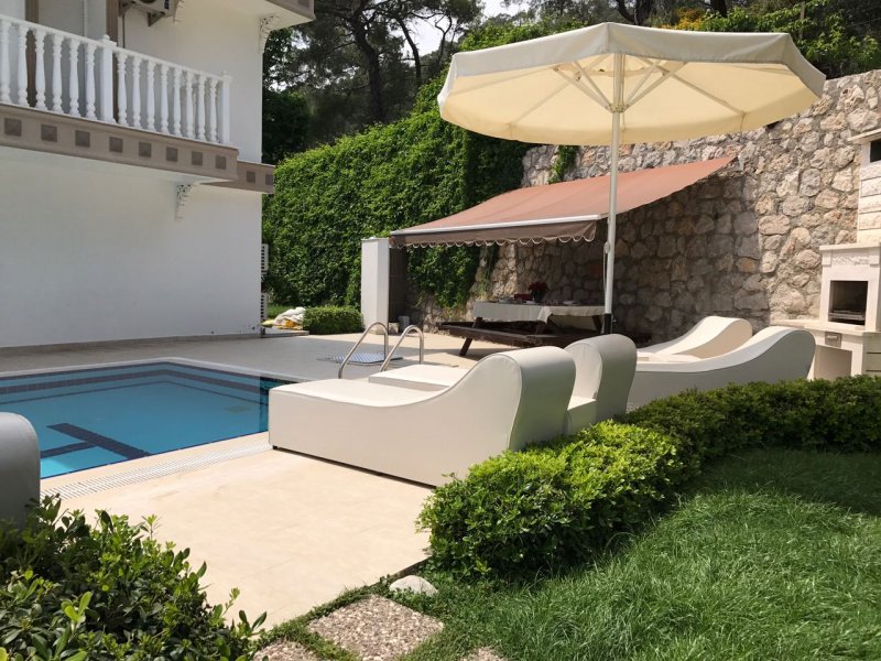 لدينا فلل للبيع مع وجهات النظر مذهلة من جبال طوروس، بركة سباحة خاص، والشواء، والعقارات خاص مع المعالم المعمارية مثل الحمامات.