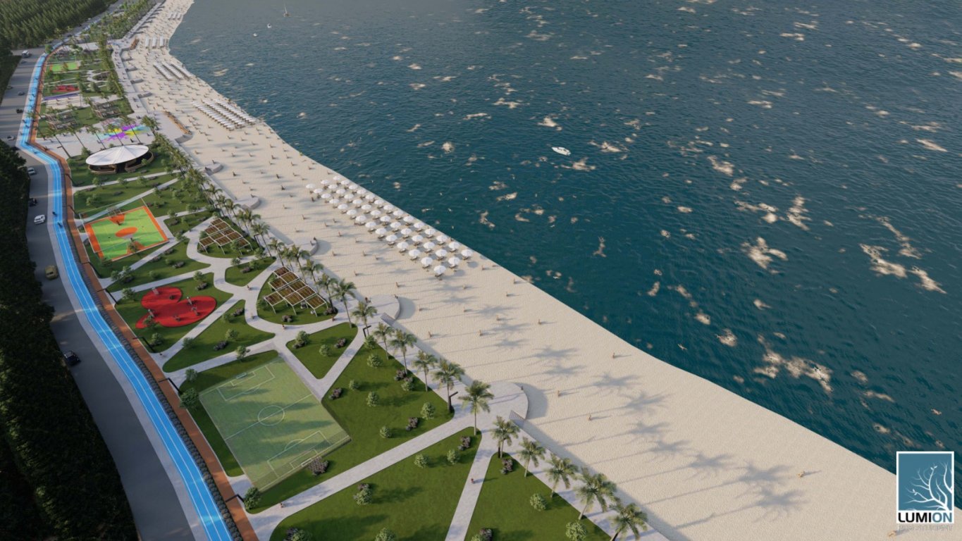 Der Strand wird insgesamt 900 m lang und 50 m breit sein. Es wird allgemeine Nutzungsbereiche, Duschen, Umkleidekabinen und Parkplätze geben. Die Eintrittspreise werden gemäß den Standards der Bürger gehalten und jeder kann von diesem Bereich profitieren.