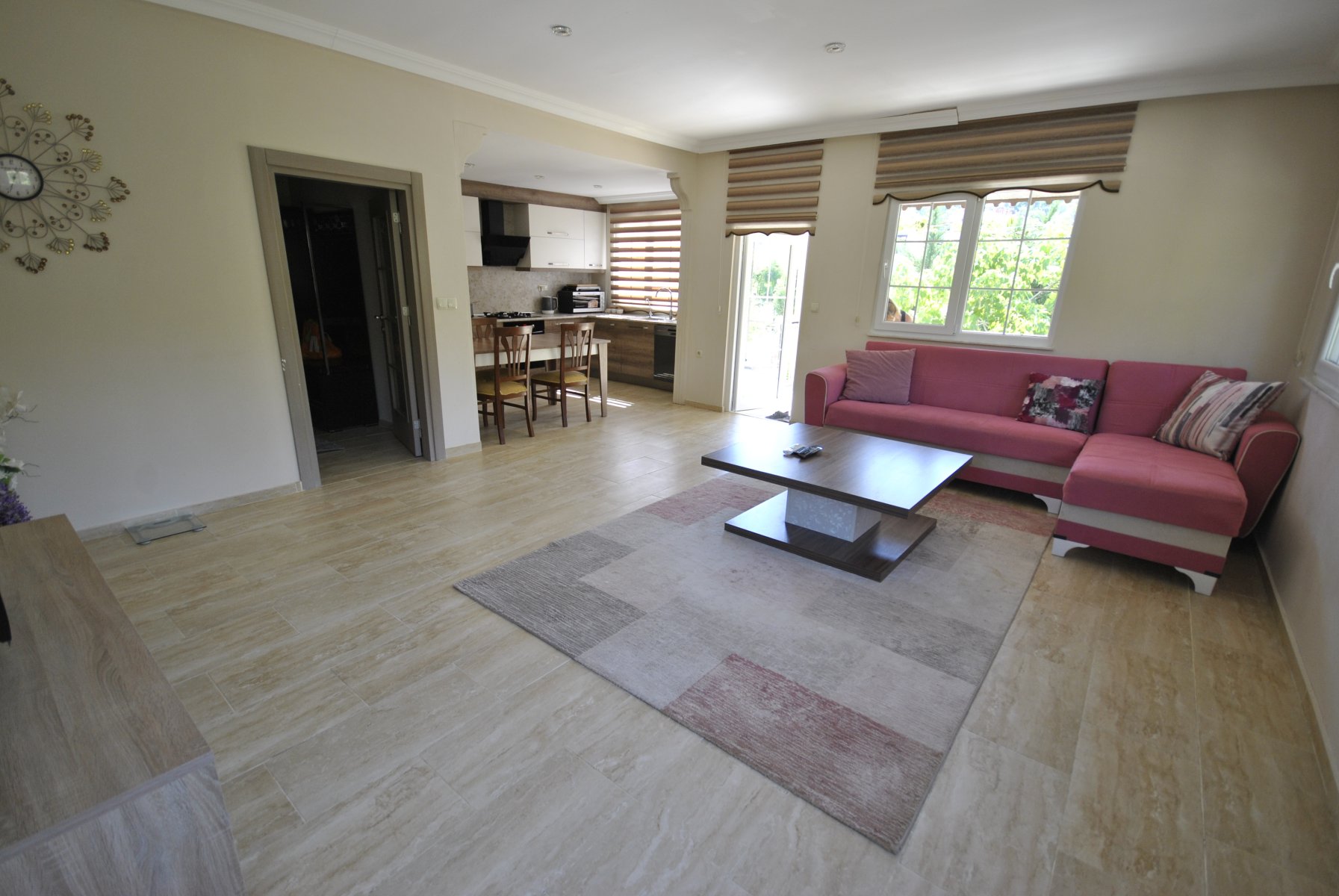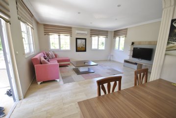 Garden floor of our villa: There is a large living room and kitchen on the garden floor of our villa. At the same time, you do not have to go upstairs at all, thanks to a bathroom with shower and a bedroom on the garden floor.