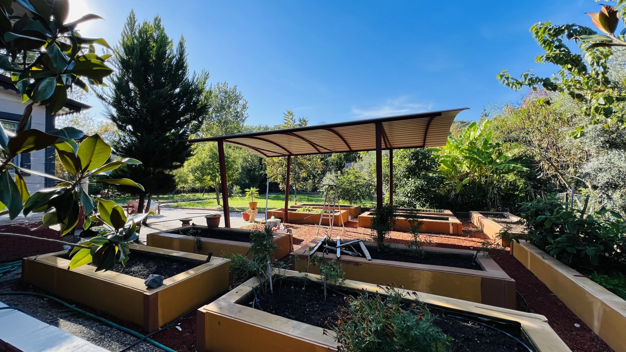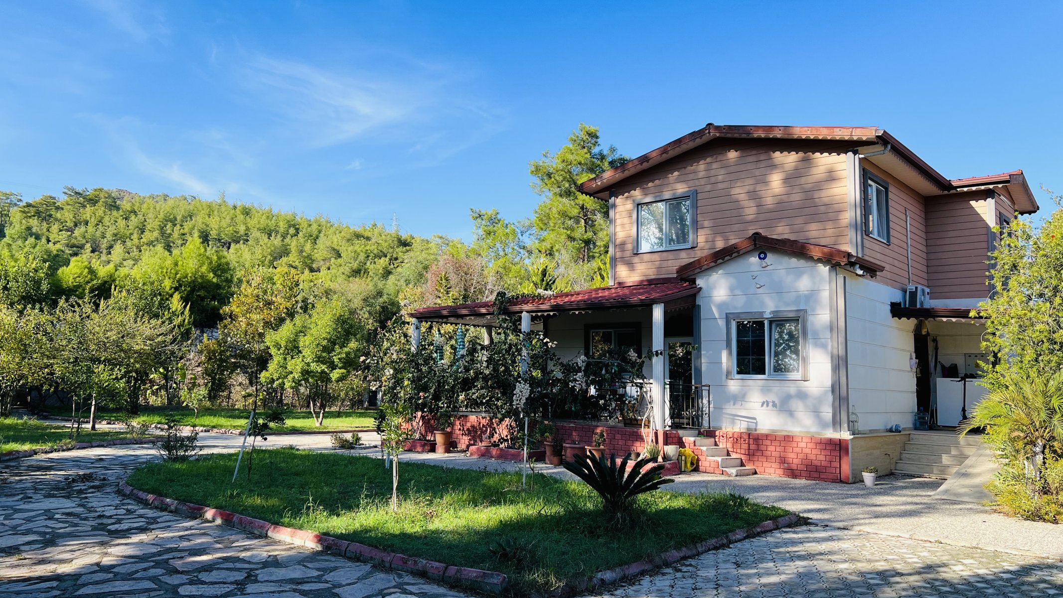 There are two guest houses in the garden of the villa, one of which is 2+1, designed for those who have a large family or those who want to live with grandchildren and siblings, and will not disturb anyone. The guest house has its own kitchen and bathroom.
