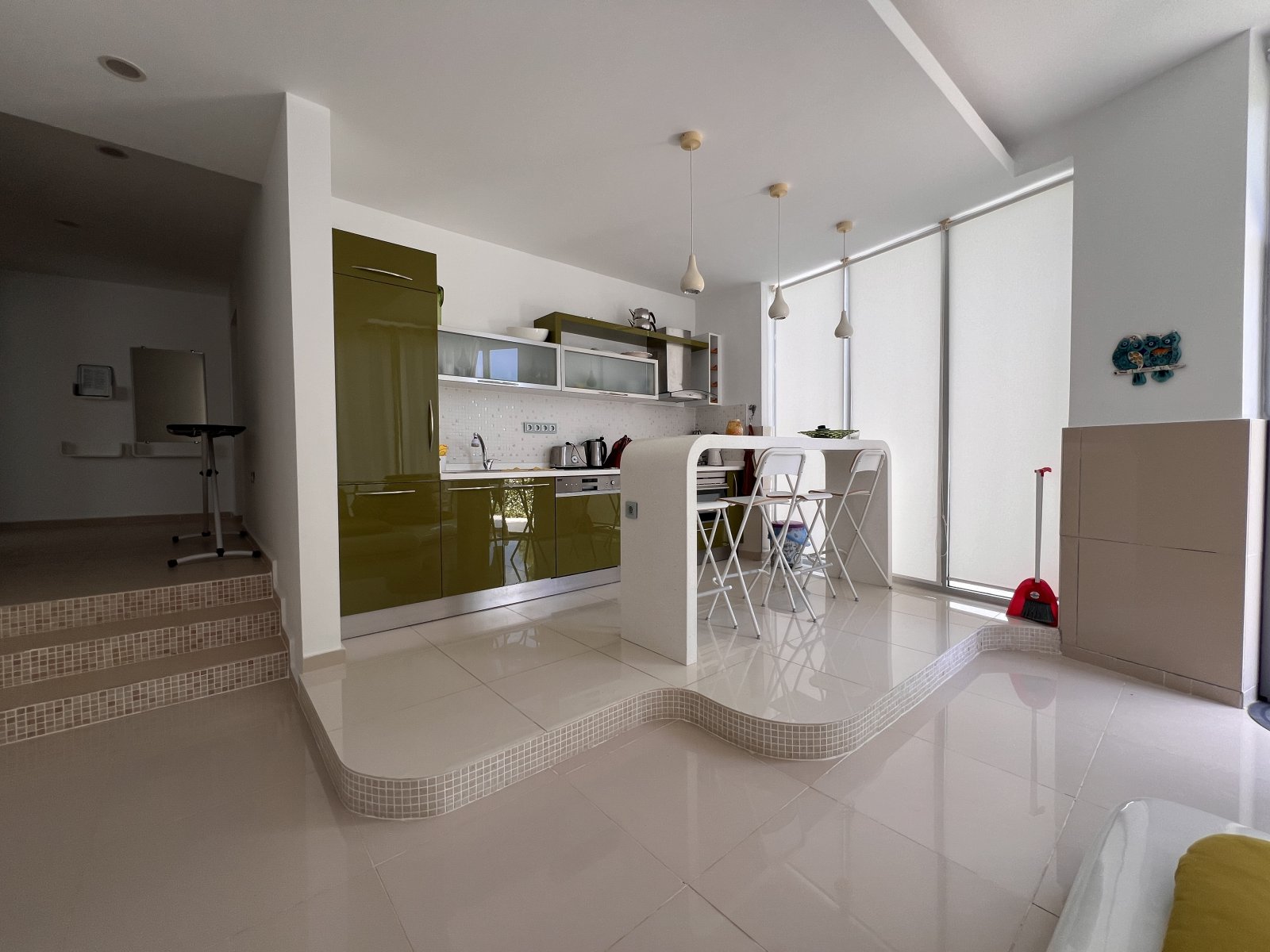 The ground floor of the villa for sale has: open kitchen, living room, two bedrooms, hall, bathroom, large terrace with access to the garden.