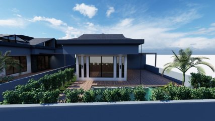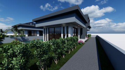 The villa has a usage area of ​​130 m². Each villa has its own land share of 263 m².