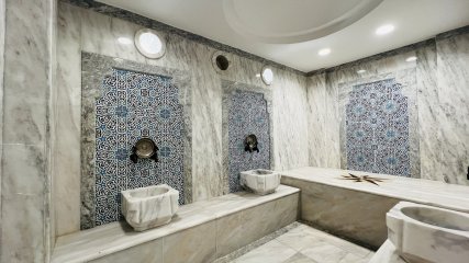 The Ground floor features a spa and social area with a Turkish bath, sauna, steam room, jacuzzi, hobby room, game and sports area, billiard section, bathroom with shower, and a technical room with heating system.