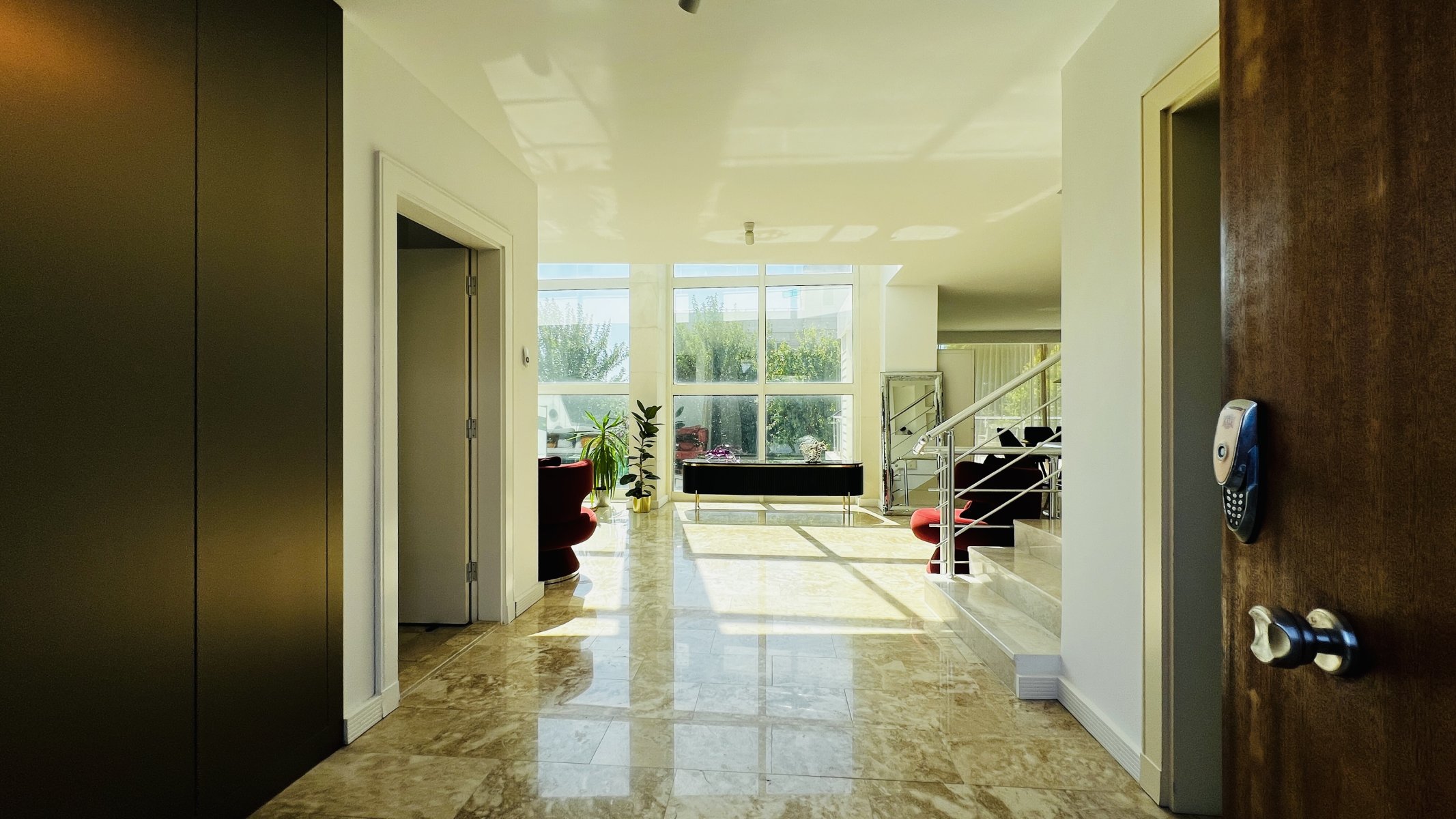 The second floor comprises three elegantly designed bedrooms with en-suite bathrooms, while the third floor is dedicated to a luxurious master suite with a private bathroom, jacuzzi, and an expansive terrace with breathtaking views.