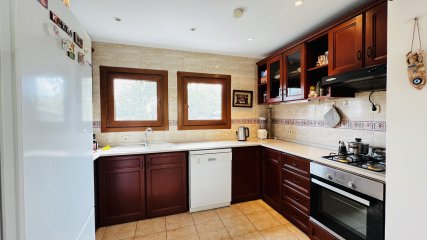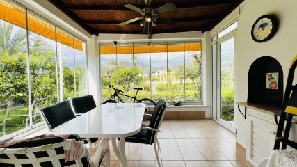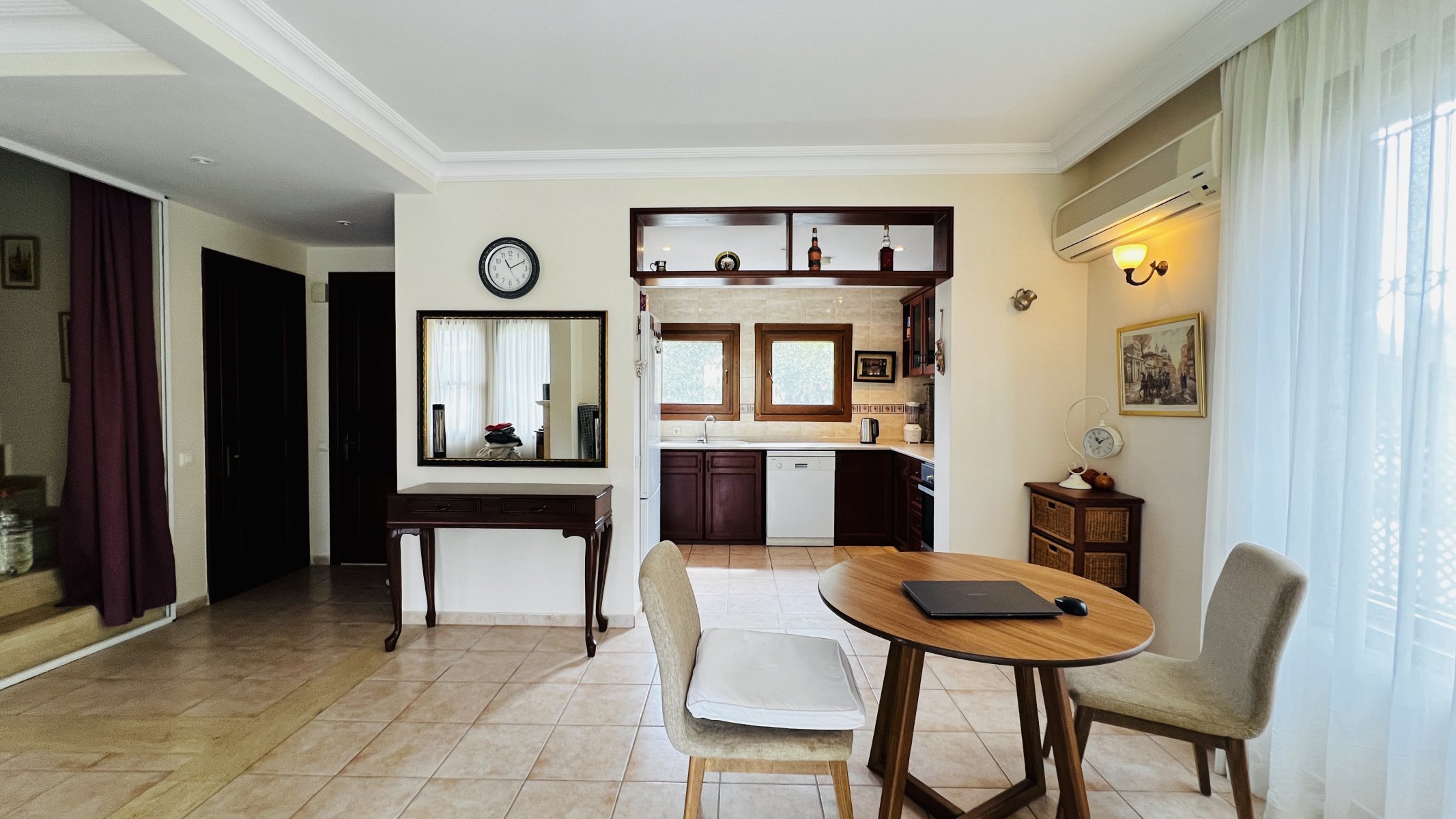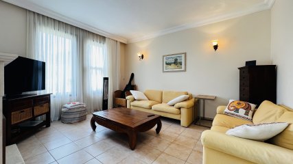 The villa is located in a well-maintained residential complex and offers everything needed for a comfortable lifestyle, including a swimming pool. Within the complex, there are mature fruit trees, a covered relaxation area, a children's playground, and a tennis court. A separate entrance provides additional privacy, while the availability of a parking space makes living even more convenient.