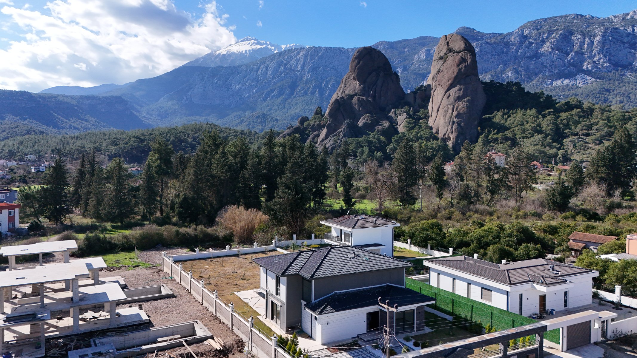 En ny to-etasjes 4+1 villa er til salgs i det prestisjefylte og rolige området Kuzdere i Kemer. Villaen ligger på en romslig tomt på 1 176 m² og har et boareal på 300 m². Eiendommen er oppført i moderne arkitektonisk stil med materialer av høy kvalitet. Kuzdere-området i Kemer øker stadig i verdi takket være sin ro, rene luft, nærhet til fjellene, godt utviklet byinfrastruktur og enkel tilgang til sjøen.