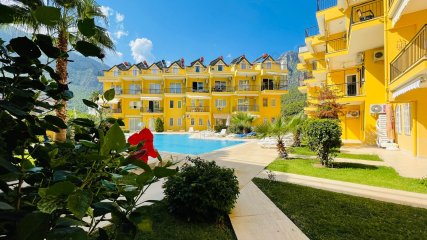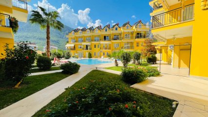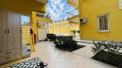 Квартира расположенная в комплексе с бассейном состоящем из 3 блоков находится на входном этаже. В комплексе есть система видеонаблюдения и интернет.