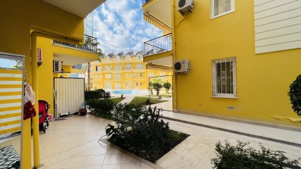 В жилом комплексе с бассейном на продаже квартира планировки 2+1. Квартира на продажу площадью 85 м² расположена на входном этаже трехэтажного дома.
