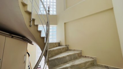 На первом этаже виллы: просторная гостиная, кухня открытого типа, гостевой туалет, терраса.