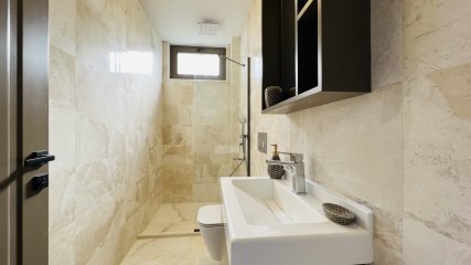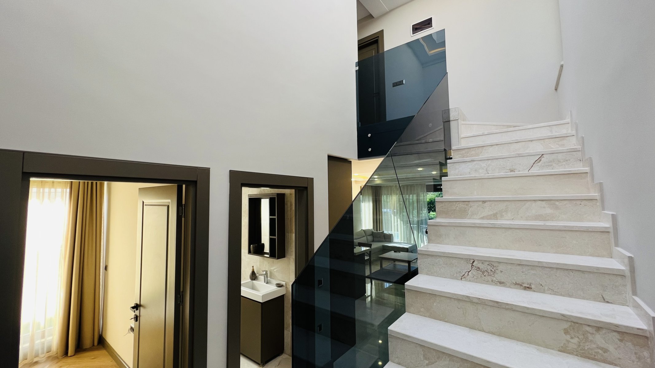 Виллы типа дуплекс общей площадью 115 м² и имеют участок земли площадью 352 м². Основным материалом, используемым в строительстве виллы, был выбран мрамор.