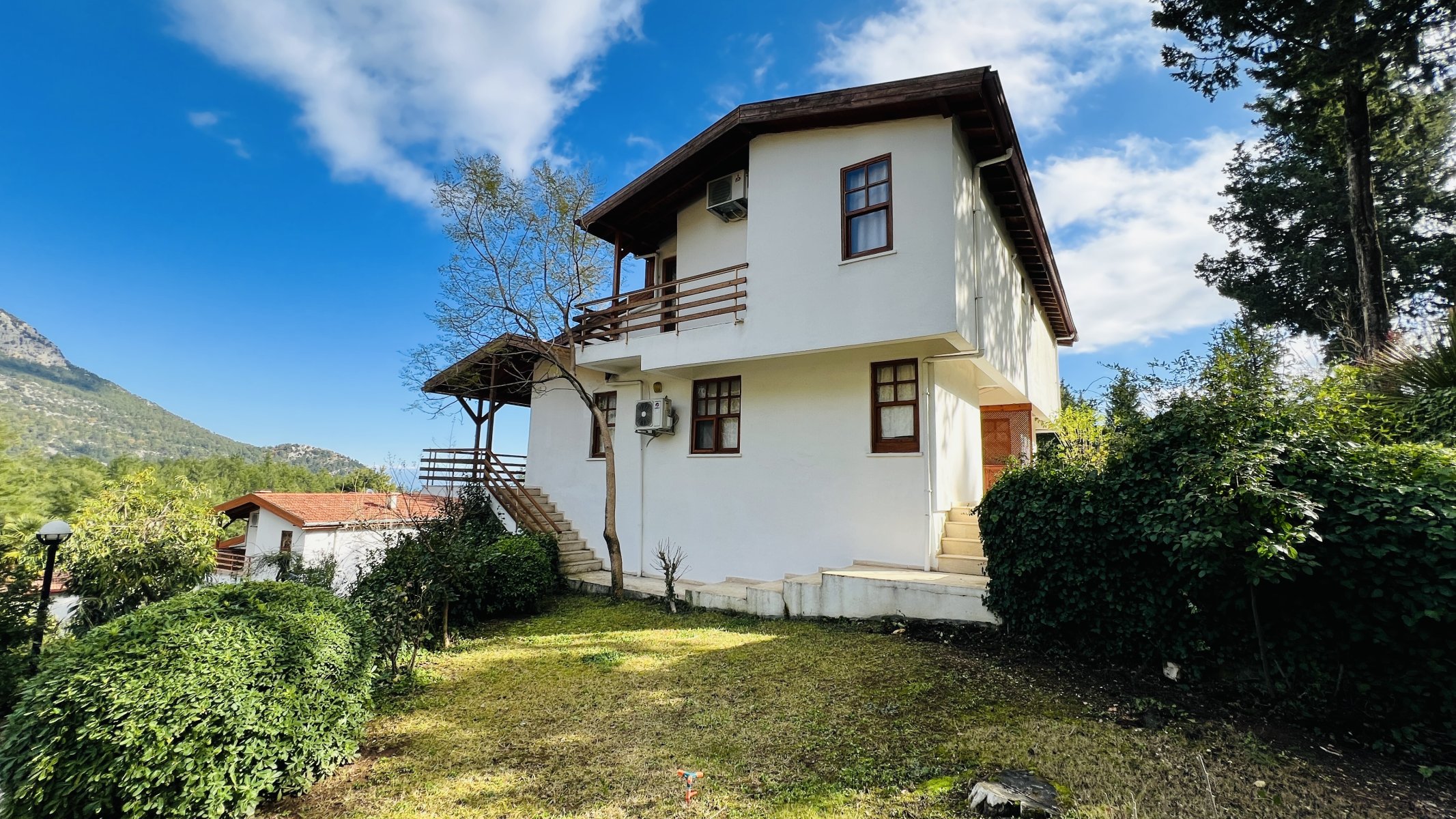 Вилла, выставленная на продажу, расположена в 7 км от моря, в 17 км от центра Кемера и в 1 км от супермаркета, в 74 км от аэропорта Антальи.
