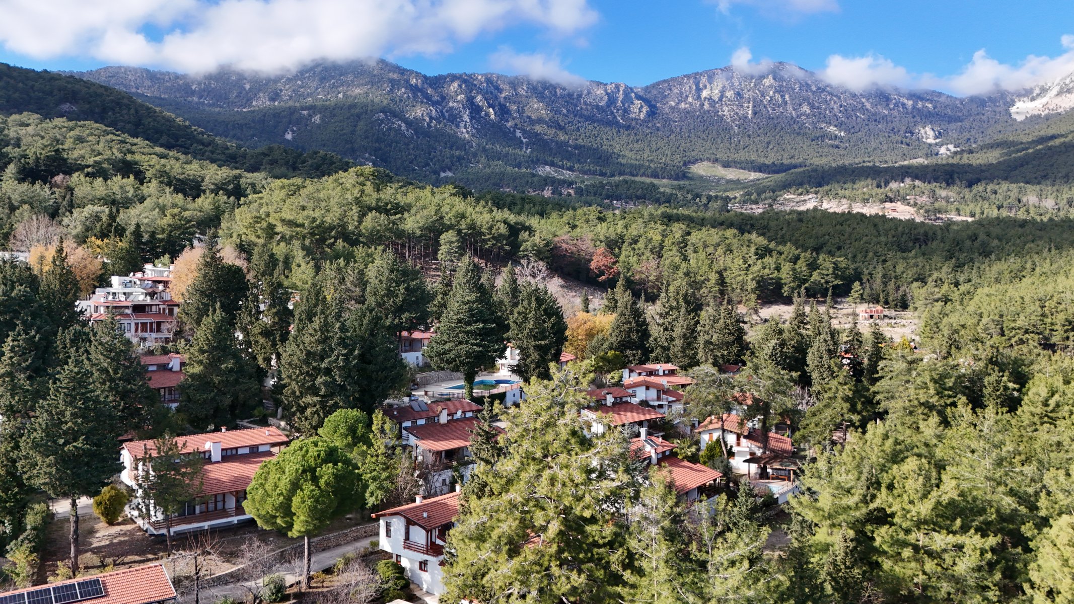 В жилом комплексе с бассейном на продаже смежная вилла планировки 2+1. Вилла на продажу находится в тихой уютном районе в окружении сосновых деревьев и великолепным видом на горы.