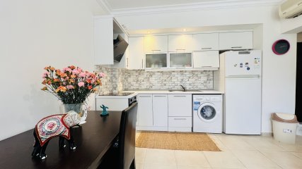 На продаже квартира планировки 1+1 с восхитительным видом на горы и апельсиновый сад . Квартира на продажу в Кемере находится в одном из самых ухоженных жилых комплексов .