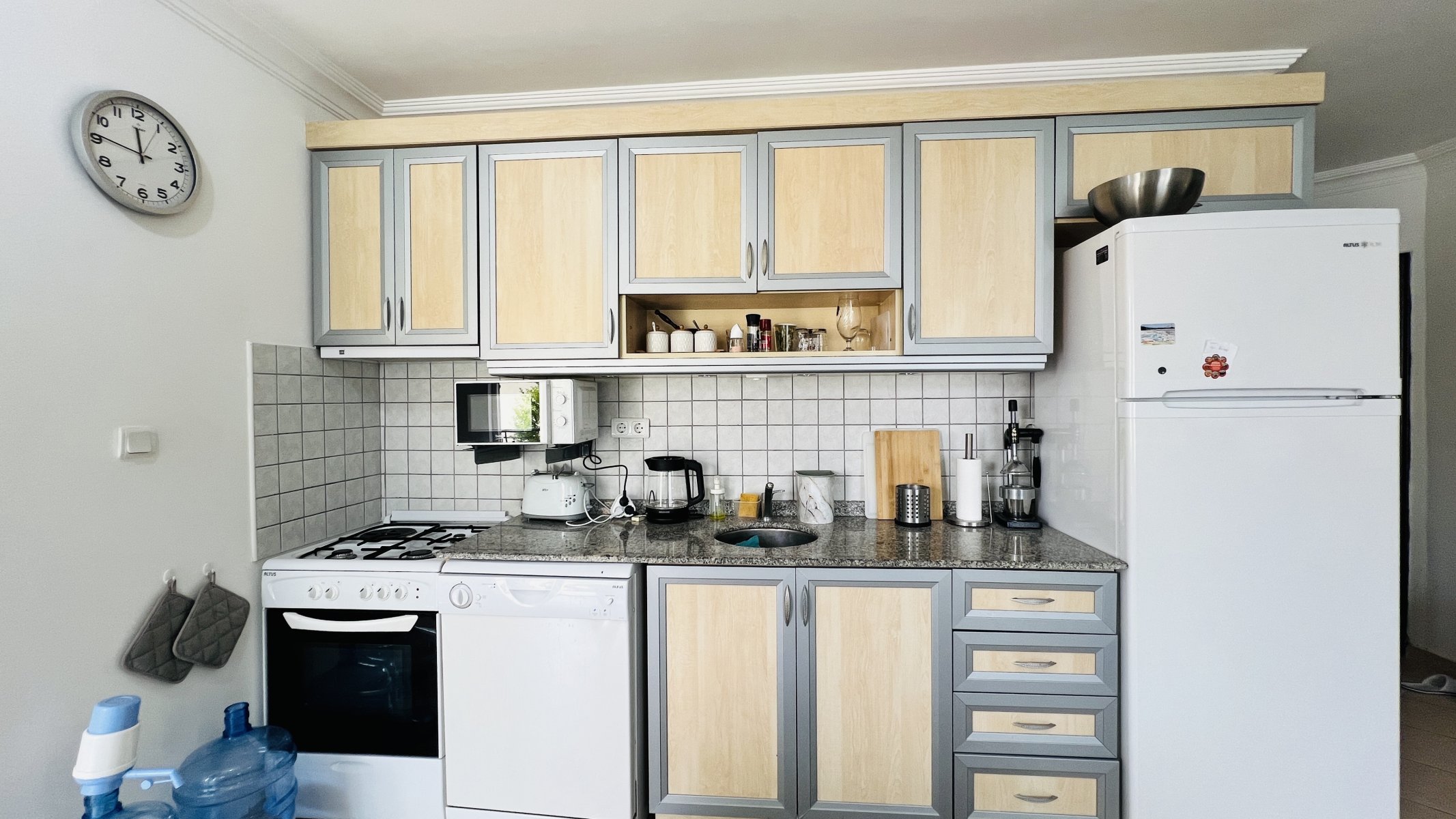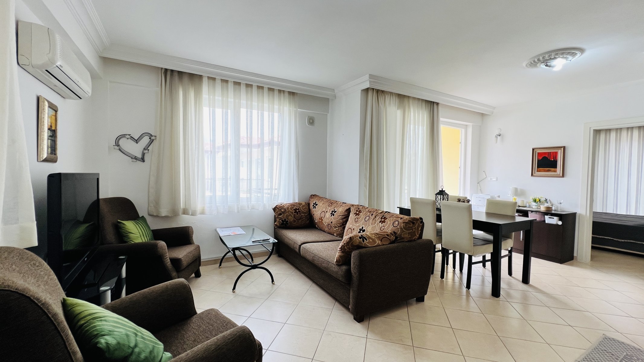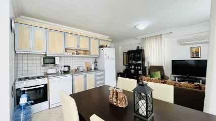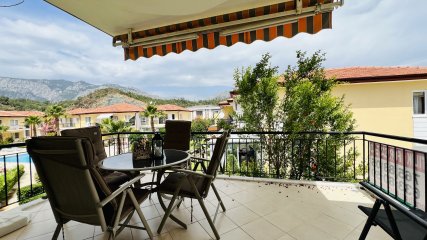 Кемер Чамьюва продажа квартиры планировки 2+1. Квартира на продажу находится в жилом комплексе с бассейном и видом на горы. Недвижимость выставлена на продажу полностью меблированной.