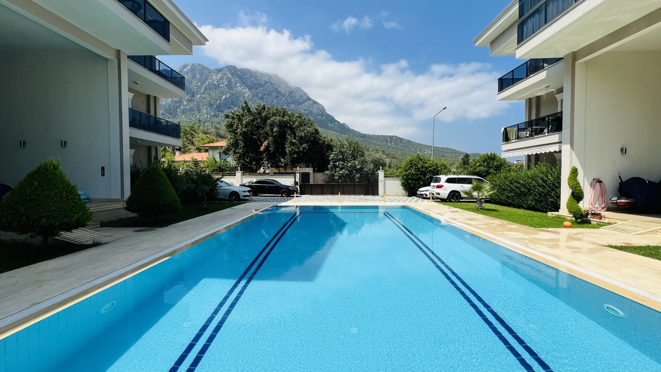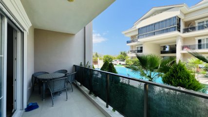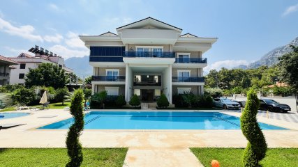 Полностью меблированные апартаменты с двумя спальнями в аренду расположены в престижном районе Арсланбуджак, Кемер, в современном комплексе с бассейном.
