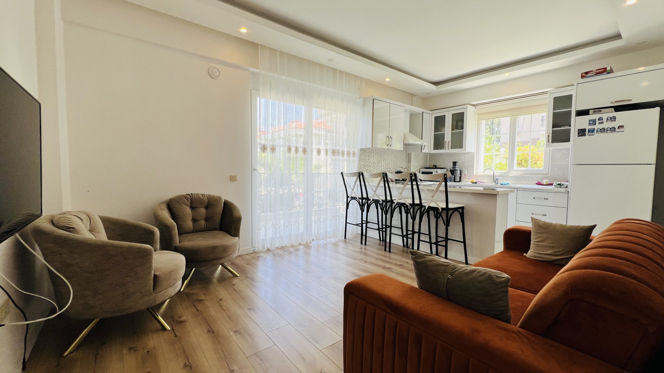 Квартира в аренду находится всего в 4 км от моря, в 3 км от центра Кемера, в 60 км от аэропорта и всего в 500 метрах от супермаркетов.