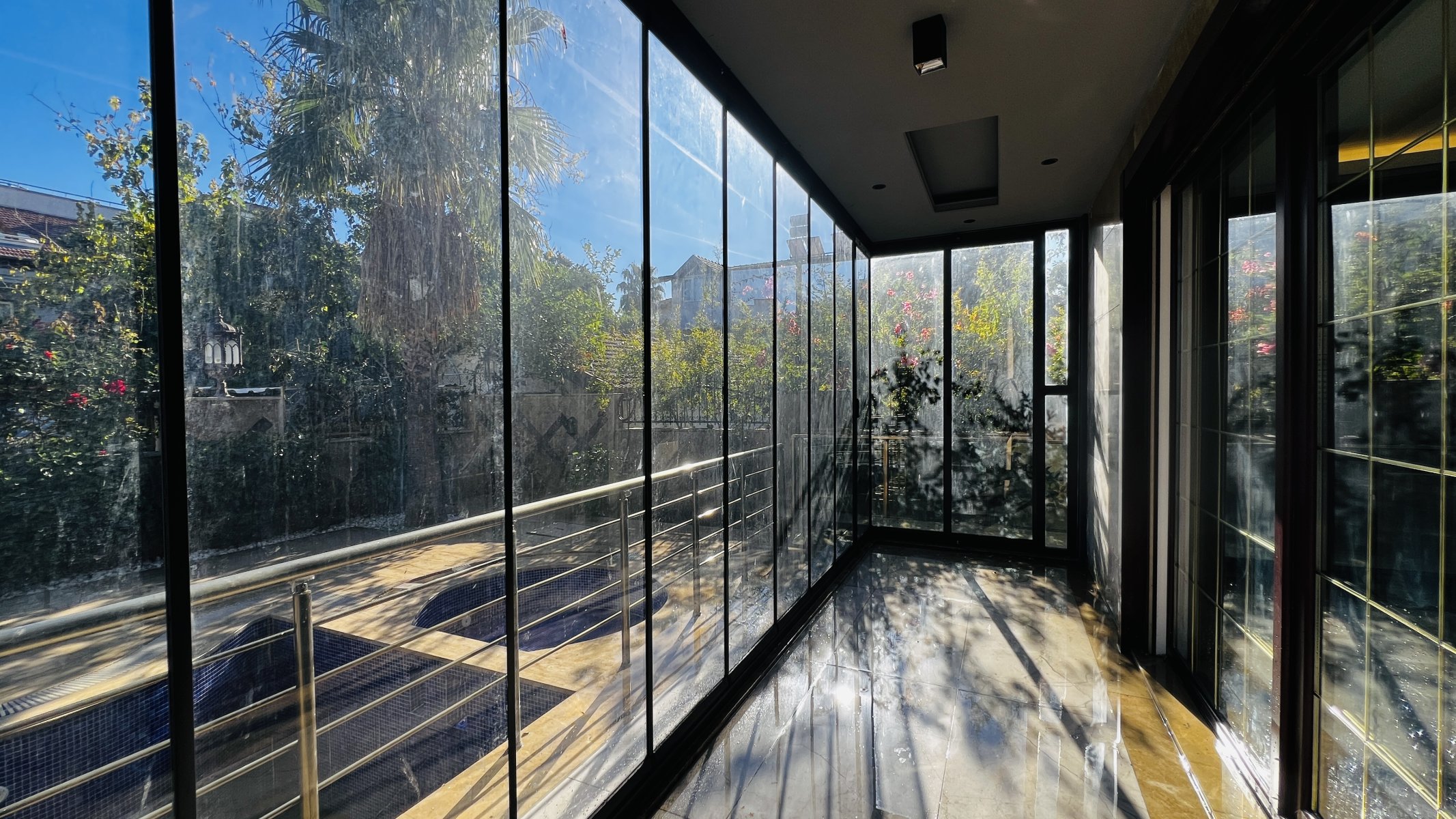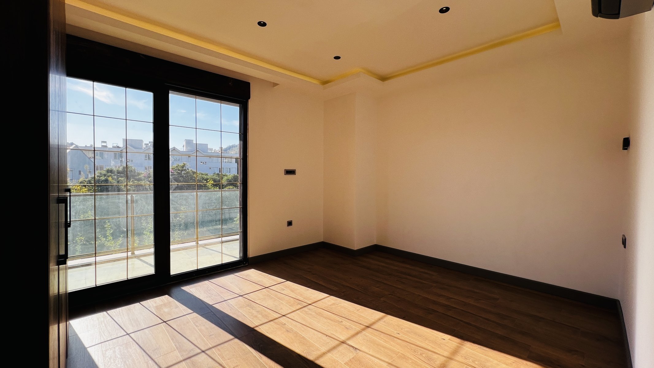 Вилла расположена в центре Кемера, всего в 200 метрах от моря, и имеет общую площадь 460 м². Планировка включает 6 спален, пять ванных комнат (в том числе мастер-ванную), отдельную кухню и прачечную. Также предусмотрены сауна, паровая комната, хаммам, кинозал, хобби-зона и комната для персонала. Имеется специально спланированное пространство, которое может быть оборудовано под бильярдную и спортивную зону. В саду расположена зона барбекю.