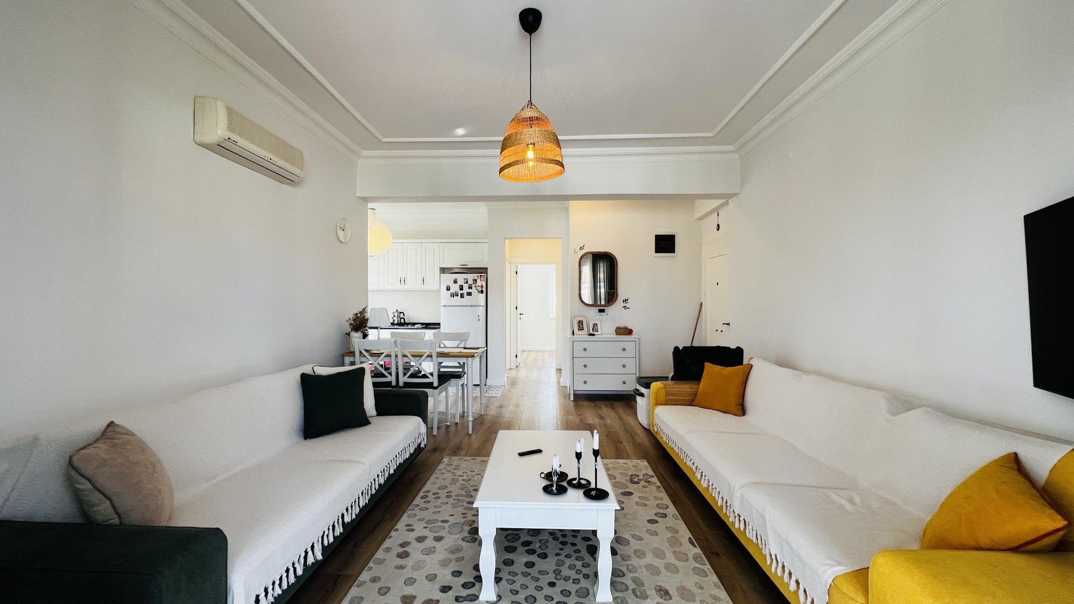 Kemer Çamyuva da satılık daire 2 yatak odası, 1 salon, 1 açık plan mutfak, 1 banyo, 1 tuvalet, 2 balkon, 1 teras ve 1 depo odasından oluşmaktadır.