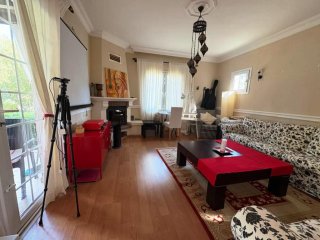 Kiralık müstakil villa geniş salon, dinlenme alanı ve ymutfak alanı olarak ikiye ayrılmıştır. Dinlenme bölümünde kışın yüksek verimli ısı sağlayan büyük bir şömine bulunur — ayrıca villada meşe odunu stoğu bulunmaktadır. Keyifli vakit geçirmek için projeksiyon cihazı ve perde, Mikado marka taşınabilir plak çalar ve klima mevcuttur.