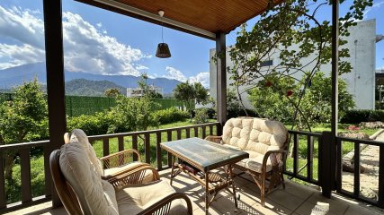 Satılık villa, Çamyuva’nın yeşil ve sakin bir bölgesinde yer almaktadır ve denize sadece 600 metre mesafededir. Sessizlik ve doğa ile iç içe bir yaşam arayanlar için ideal bir konuma sahiptir. Aynı zamanda Kemer merkezine araçla yalnızca 7 km uzaklıktadır. Villadan Tahtalı Dağı manzarası görülmektedir ve bu özellik, Akdeniz’in en güzel bölgelerinden birinde yaşama hissi sunmaktadır.